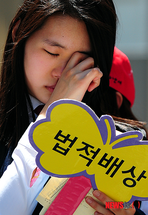▲ 수요일 집회에서 눈물을 흘리는 여고생