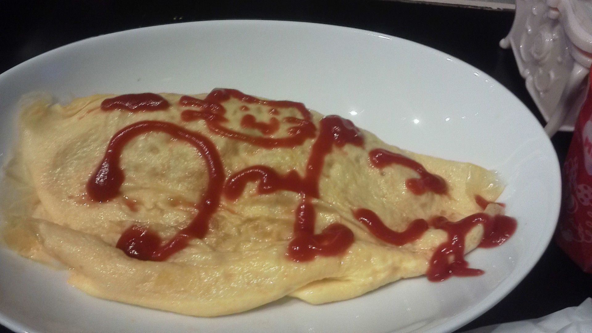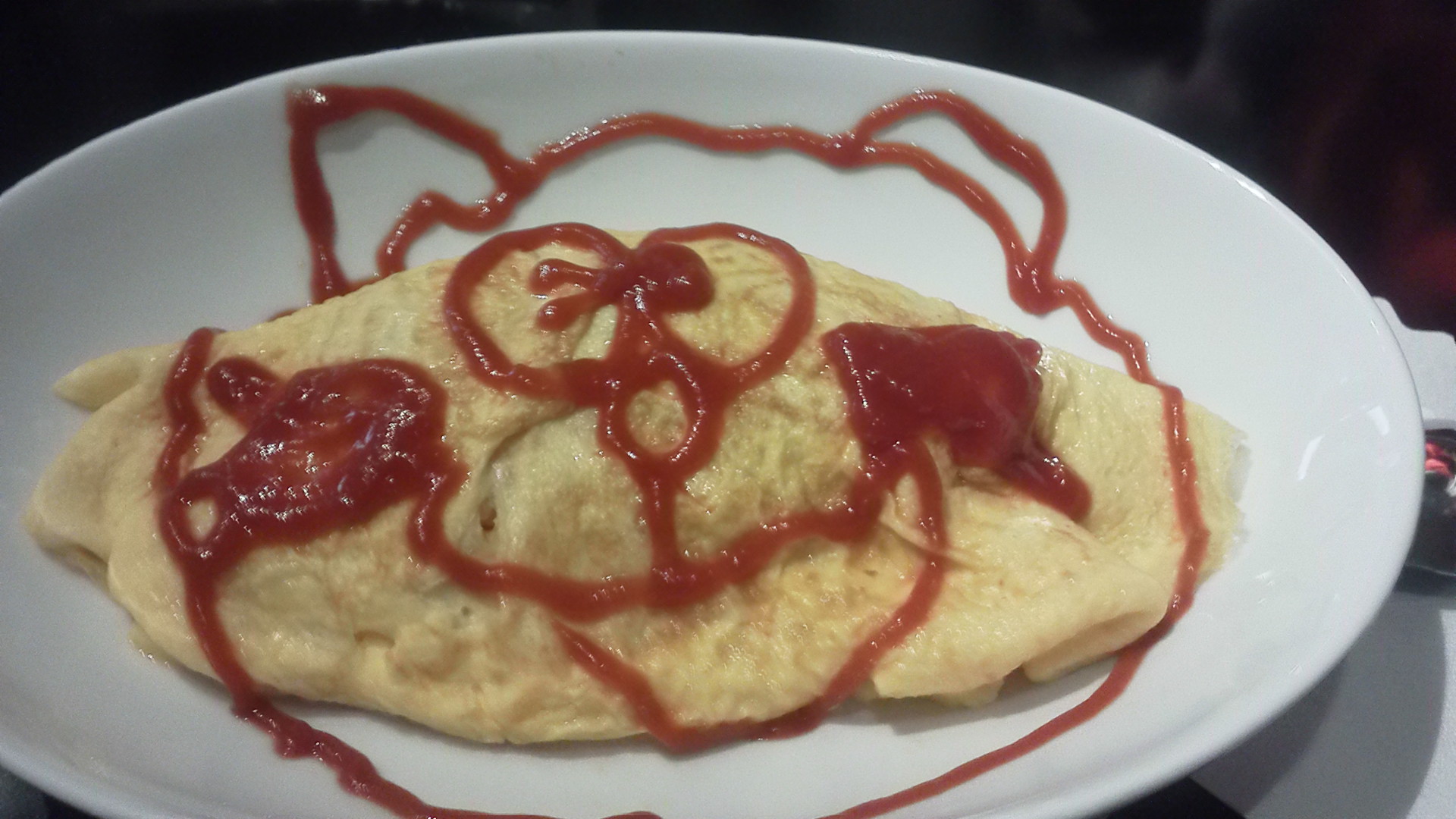 メードカフェーで作ったモエオムライスです. ニャルコ羊の右‾かを書いて見た..