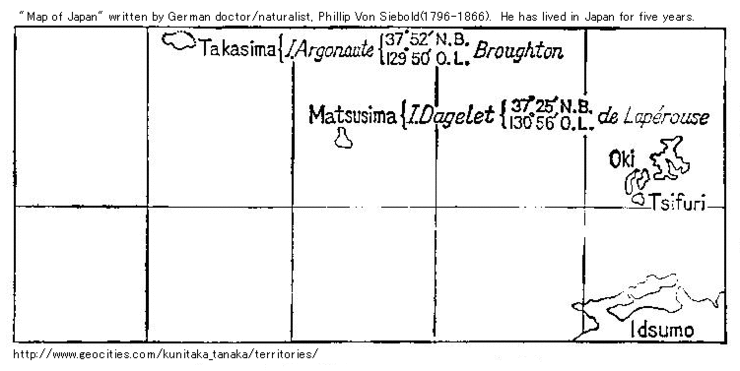 이 지도를 본 시볼트는 일본에 동해에 다케시마(울릉도의 옛 명칭)와 마쓰시마(독도의 옛 명칭)가 있다는 것을 알고, 아르고노트를 다케시마, 다즐레를 마쓰시마라 부르게 되었습니다.
