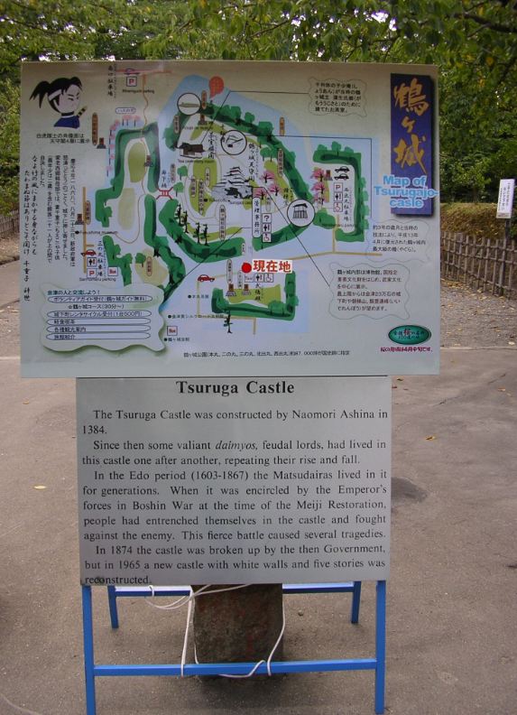 鶴ヶ城の案内図と、英語の紹介文がありました。