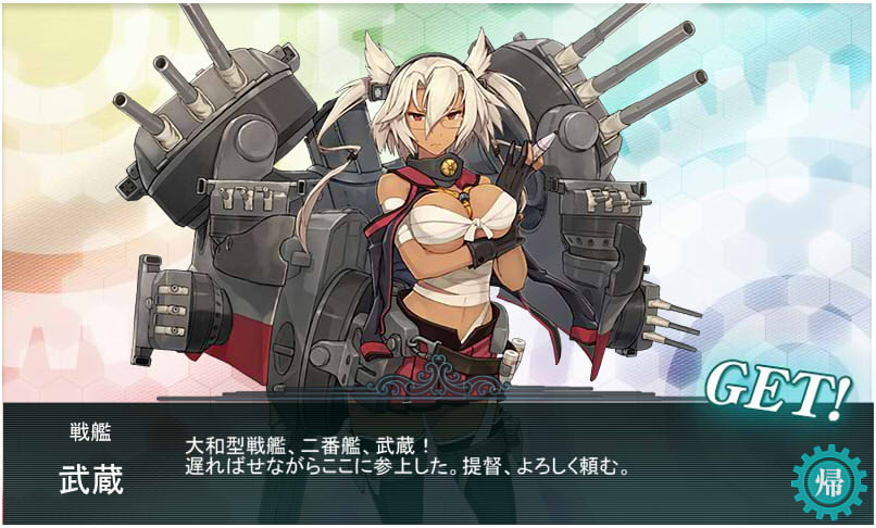 ただ今、期間限定イベント実施中で入手できる新型戦艦娘「武蔵(MUSASI)」のご紹介。