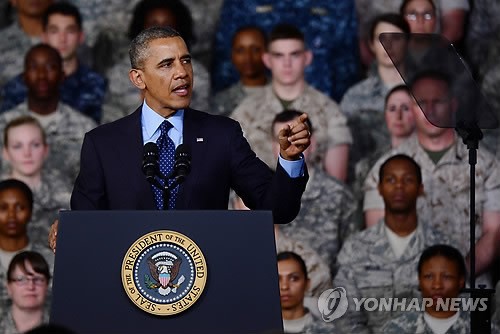 米軍兵士ら対象に演説するオバマ (ソウル写真共同取材団=連合ニュース) ボラックオバマアメリカ大統領が 26日午前ソウル竜山米軍基地私のコリー語フィールドで在韓米軍兵士を対象で演説をしている.