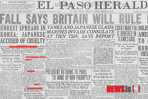 【ニューヨーク=ニューシース】掻彰拐特派員 = 人類歴史に永遠に残る偉い平和と人権, 自由独立を唱えた 3.1運動が起った時 AP通信とニューヨークタイムズなどアメリカ有数の言論たちが幾多の記事をこぼし出して独立を熱望する韓民族の熱い気象を世界に知らせたことで現われた. ニューシースが米連邦議会と主要新聞社DB資料を検索した結果三一運動に関した報道は一世紀の前のメディアでは信じられない位詳細に扱われた. 特にニューヨークタイムズは 3.1運動が世界史に類例ない大規模平和デモというのと関連, 1919年 4月 24日 ‘コリア’という長文の社説を通じて主類言論では初めて朝鮮の独立を公式支持した. 写真はステートメントを持っていたという理由で少女の二つの手首を切ったという日製の蛮行を 1面に告発したテキサスエルパソヘラルド新聞. 2014.02.27. <写真=米議会図書館 DB> robin@newsis.com 2014-02-27
