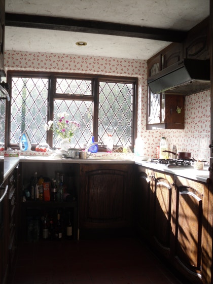 부엌 바로 옆에는 이렇게 거실?이 있었어요. 역시 영국이라 그런가 꽃이 어딜가도 있네요.