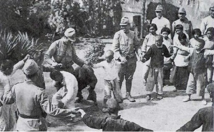 난징 대학살후 자신이 저지른 학살 만행범의 죄악을 은폐하기 위해 점령지의 중국 어린이에게 먹거리를 주는
