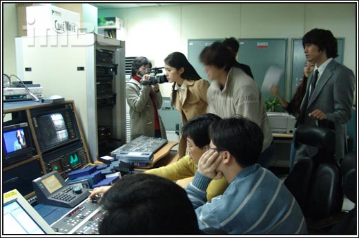 사진 2. 촬영된 장면을 모니터하며 스쳐지나가야 하는 위치를 확인하는 중.