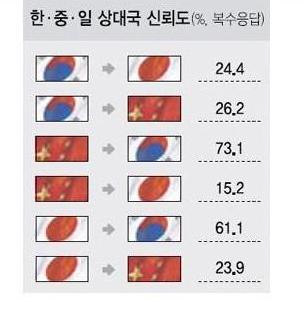 韓国日報・日読売・中リャオワングドングパング(瞭望東方) 共同世論調査