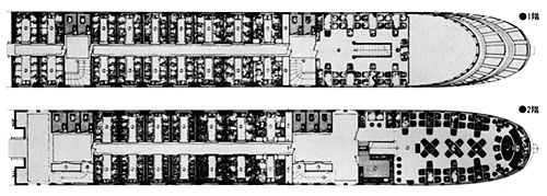 슈퍼 트레인」의 최후미 차량 (측면도+1층과 2층의 표면도)