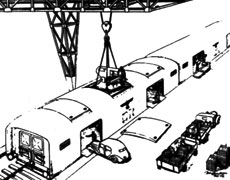 ●「슈퍼 트레인 계획」에서는, 1000톤 가까이의 초대형 화물을 운반 가능인 특수 차량도 설계되고 있었다.