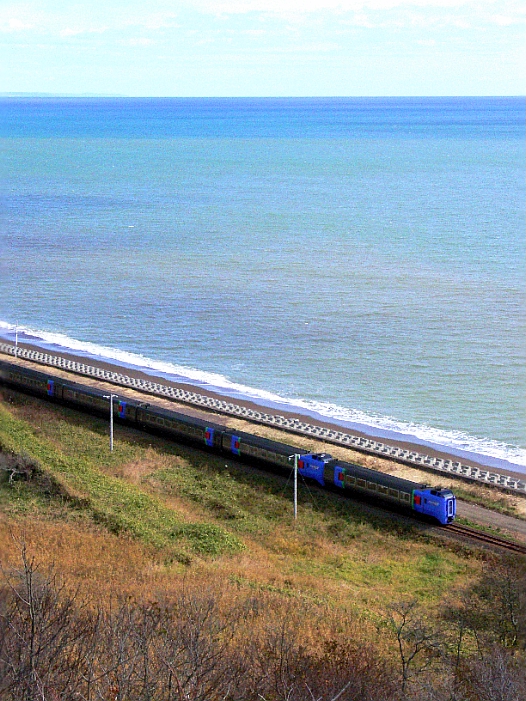 쿠시로를 떠나고 1시간. 기차는 태평양에 따라서 닫아요.