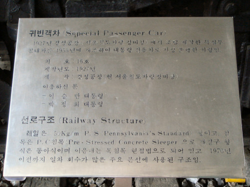 イスンマン大統領とパクジョンヒ大統領が乗った列車と書いてあります。