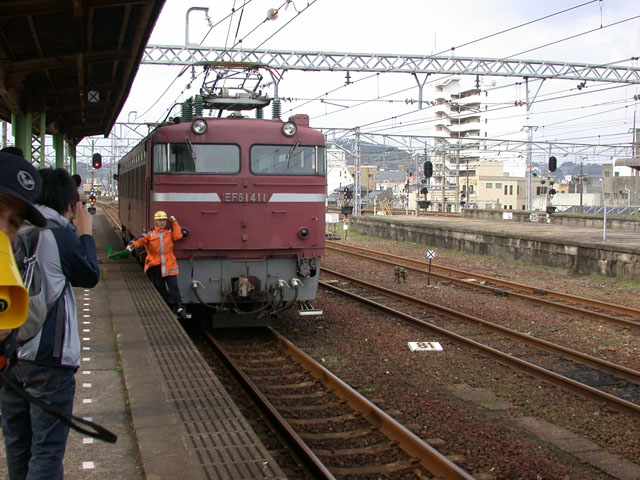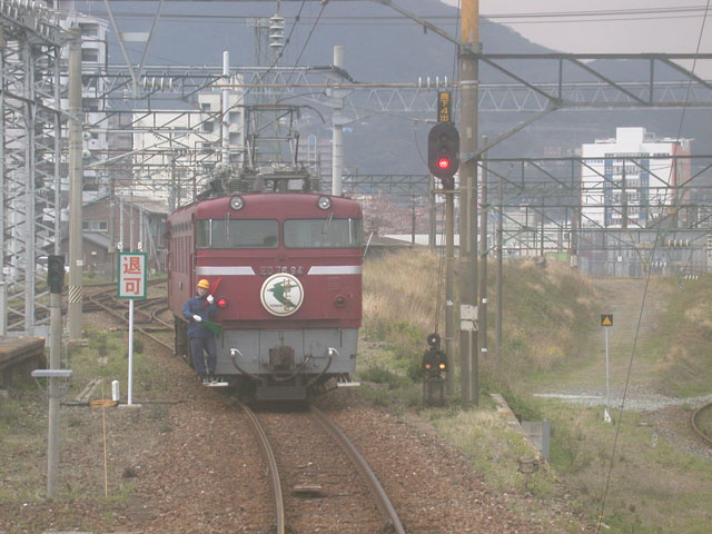 Kan-monトンネル(海底トンネル)の手前、Shimonoseki で機関車を交換、