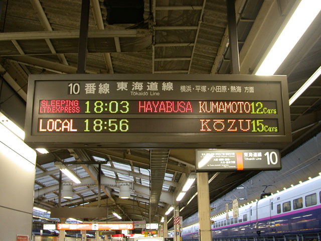 Tokyo駅、発車案内。