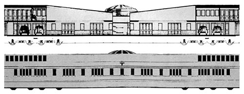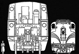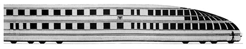 「슈퍼 트레인」의 최후미 차량 (측면도+1층과 2층의 표면도)