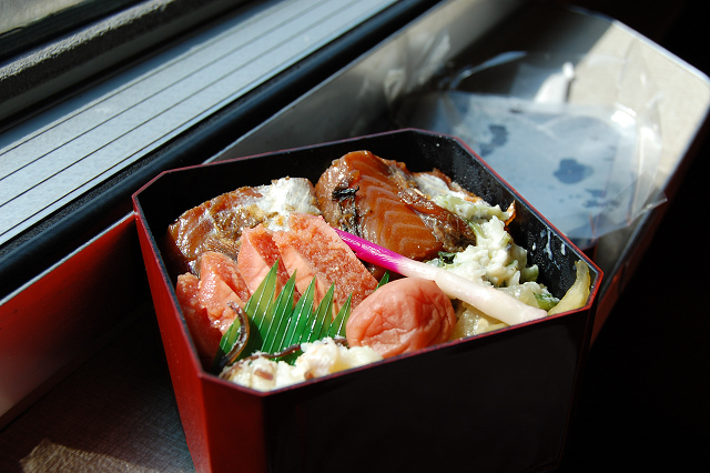 보통 전철의 박스석으로, 역에서 파는 도시락을 먹을 수 있는 상황이라고 하는 것은 좀처럼 없기 때문에, 이 날은