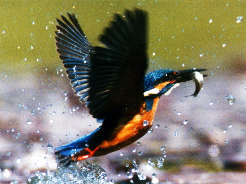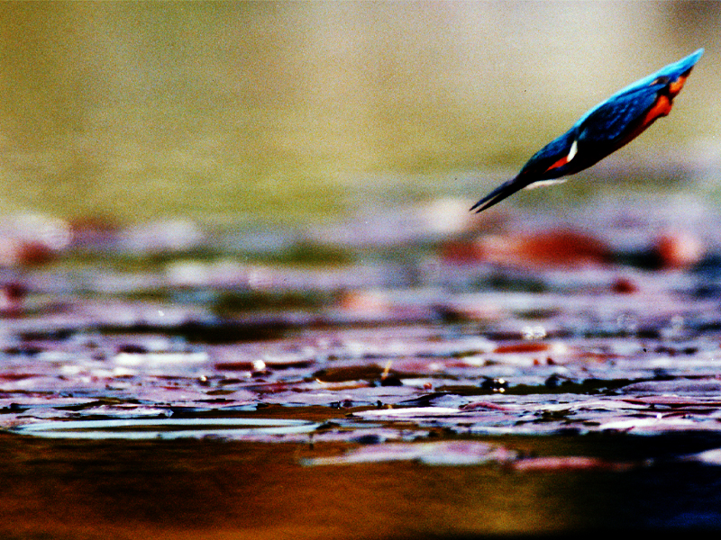 사진 8.9 다이비그 직전의 물총새와 물고기 포획 후의 물총새(사진 제공 아리타정낭씨)
