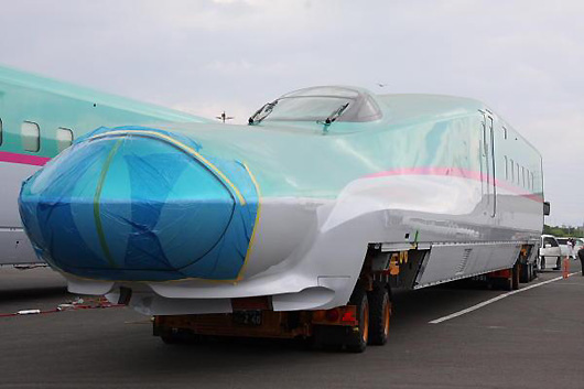 12年度末には宇都宮−盛岡でフランスの高速列車TGVと並ぶ320キロで運転し、東京−新青森を最速3時間5分で結ぶ。空気抵抗を減らす先頭車両の長い傾斜や、揺れを吸収したり曲線部分で車体を傾けて乗り心地をよくしたりする設計が特徴で、最終的には59編成が投入される計画だ。