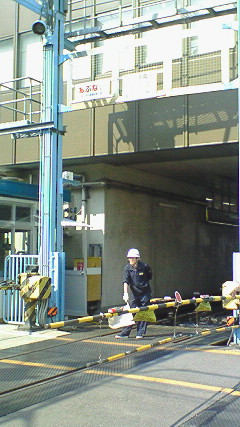 보안 요원이 건널목을 조작해, 안전을 확인한 다음 통과시킵니다.