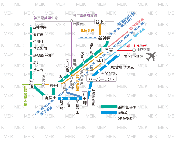 5000계 일본에서 3번째의삼발이식 리니어 모터미니 지하철로, 코베시효고구·나가타구 남부의재개발 지역을 묶는 목적으로 건설되었다.건설비의 삭감을 목적으로 하고, 터널 단면적을 작게 해, 차량의 높이·폭등도 다른 지하철과 비교하면 한층 작다.