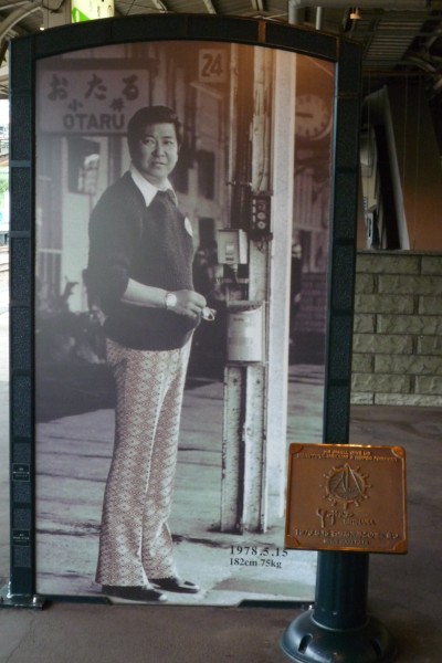 오타루역 홈에 장식되고 있었던 아저씨의 사진 패널.