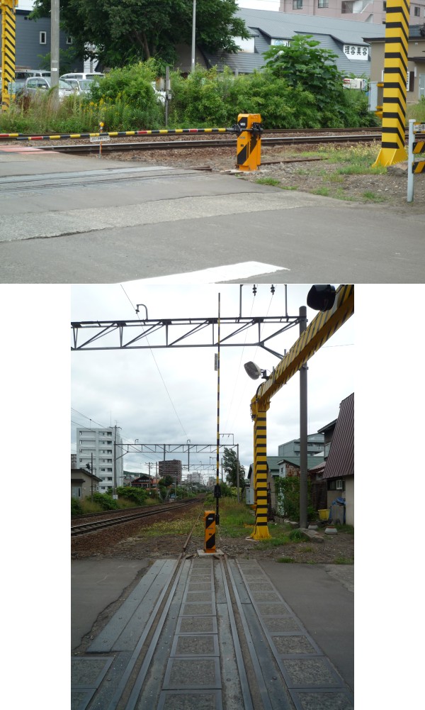 새로운 건널목 차단기는, 차단간의 반대 측에추가 붙지 않구나.