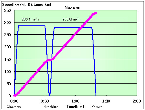 가감 속도도는 빠를 정도 정상 평균 속도가 내리므로 Nozomi가 불리합니다.