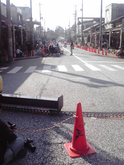 遠くに見えるアーチまでの道路を封鎖して、ミニSLを走らせます。
