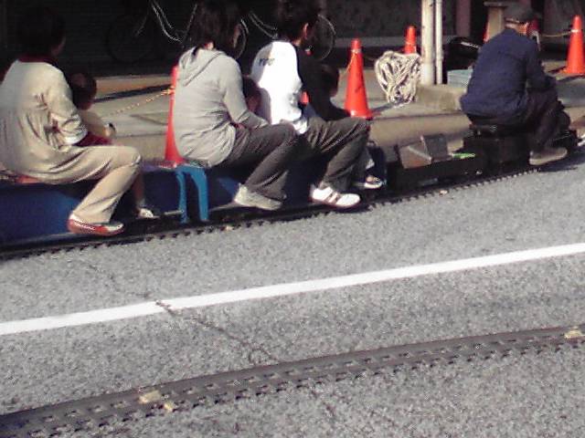 小さな車体が大の大人を何人も引き連れて力強く走る様は、
