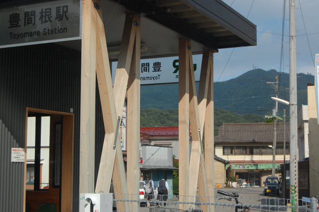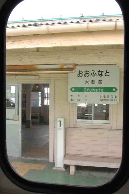 다음의 역, 성으로 오후나토선으로부터 산리쿠 철도에 환승.
