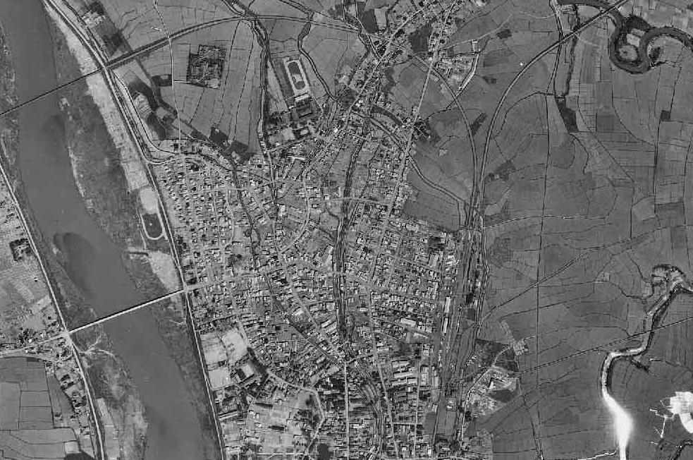 항공사진인데, 어쩐지 시정을 느껴 버립니다^^ 당시의 이 거리에 가 보고 싶다···