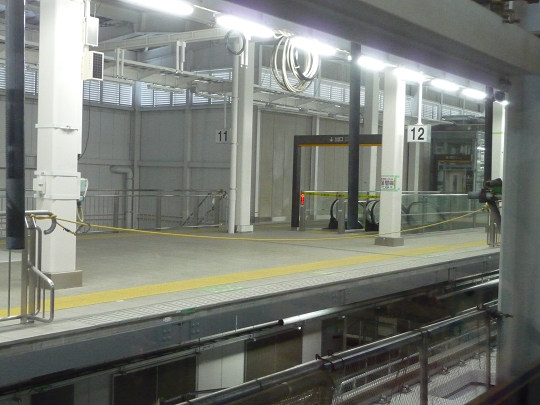足場の無いところから、新しい11番と12番のホームの番号も確認できました。11番ホームは九州新幹線折り返しのため、8両編成の車両しか停車できず、番号札のところが行き止まりです。