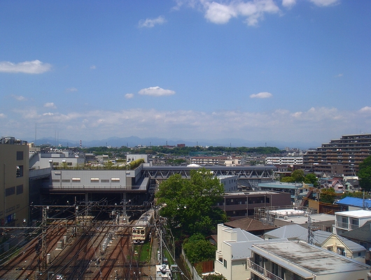 타마 모노레일 타카하타 후도우역으로부터 본 게이오 전철 타카하타 후도우역.