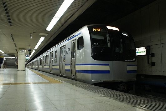 후속의 무사시노선으로 갈아 타기 전, 니우라 야스역에 온 E233계 5000번대.