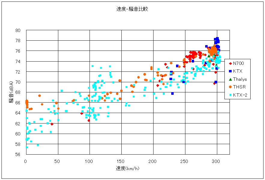 KTX-2は故障が多いとか、脱線するとか、いろいろ問題もあるようですが、こと、騒音に関しては、青組は良い仕事をしたようです。