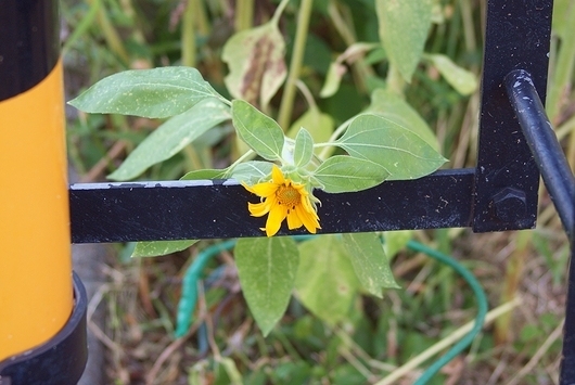 「疲れた」という声が聞こえてきそうな向日葵の花。さすがの猛暑は、夏の花にとっても辛そうだ。