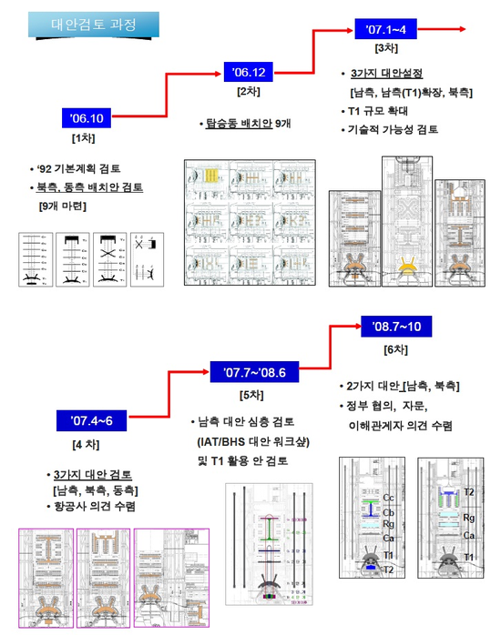 仁川空港は計画初期から旅客ターミナルと搭乗洞の多様な配置を通じる代案たちが検討になって来たが,