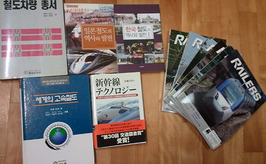 左上으로부터 「철도車兩總書」, 「일본 철도의 역사와 발전」, 「한국 철도의 역사와 발전」,