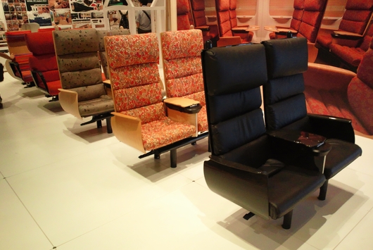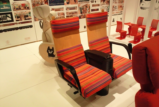 엘리베이터로 4 F의 회장에 이동.출입구 부근에 다양한 시트가 전시되고 있습니다.1 번째에서 3 번째까지는 신간선 「800계」(제비/벚꽃)의 시트, 4 번째는 「885계」(갈매기) 타입의 시트, 5 번째는 「키하 200계」(인 것은DX)로 일찌기 사용하고 있던 시트.