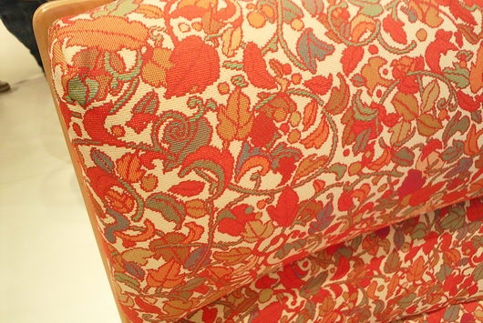 ゴブラン織のシート。1000番台の4号車の座席に使われている物です。