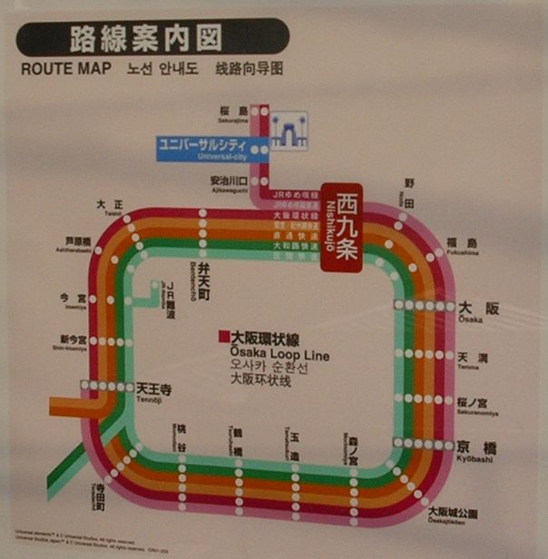 도중에 유니버설 스튜디오 재팬 제일 가까운 역의 유니버설 시티역이 있으므로, 이용자는 꽤 많습니다.