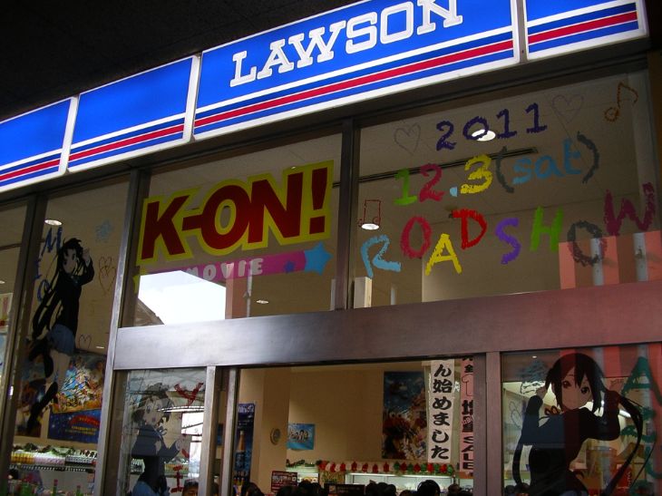 駅前のローソンが期間限定で「けいおん!」仕様になっていました^^