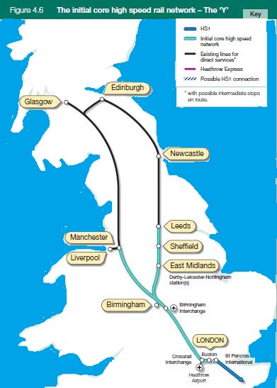 런던-버밍함간의 소요 시간은 현재의 1 시간 반 전후로부터 49분에, 런던-맨체스터간은 현재의 2시간 전후로부터 1시간 20분에 단축된다.