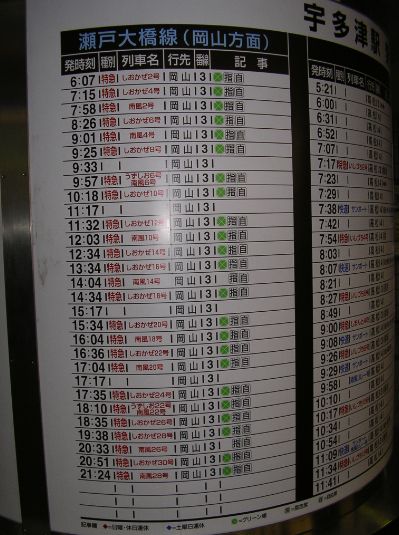 세토대교를 건너는 것은 쾌속 마린 라이너(우타즈역은 통과합니다.)인가, 특급 열차가 대부분입니다만, 각 역에 멈추는 보통 열차도 1일에 몇 개, 세토대교를 건넙니다^^