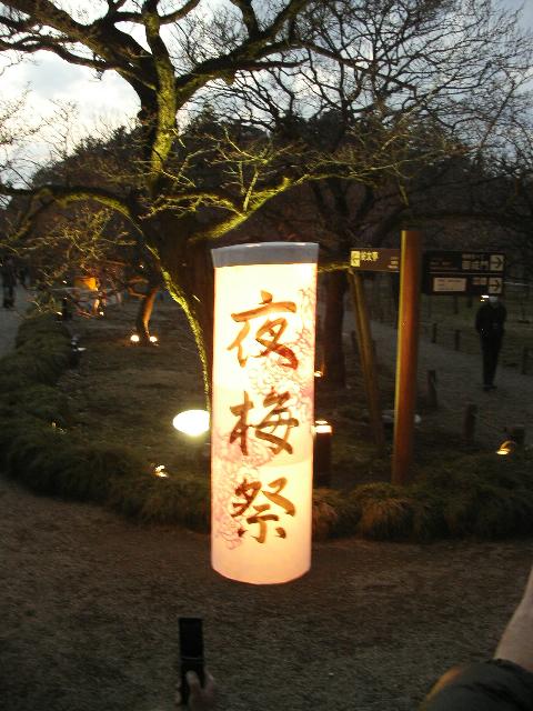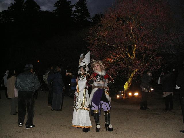 夜桜祭りの日は、コスプレ開禁になっているらしく、和服系のコスプレイヤーが梅をバックに撮影してました。