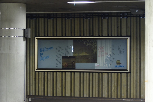 게이세이 스카이 라이너의 광고입니다만, 우하의 차량 일러스트를 보면, 앞으로대의 구·AE형의 일러스트입니다.정말로 20년 이상 방치되어 있습니다.방금전의 게이세이 우에노역 지하 주차장의 광고도, 잘 보면 03에 계속 되는 시내 국번이 3자리수대로 되어 있습니다.23구와 코마에시·미타카시·쵸후시의 일부에서 시내 국번이 완전 4 자릿수화된 것은 1991년입니다.