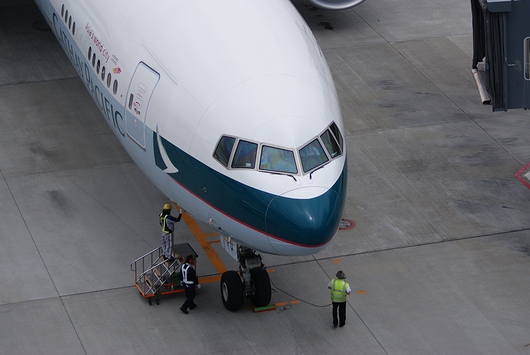 キャセイパシフィック航空(Cathay Pacific Airways/國泰航空)のBoeing 777-367ER [B-KPO]。香港から到着したCX548便です。ジャンボジェットとトリプルセブンの入れ換えが激しい便です。