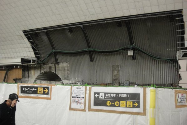 지하철 우메다의 역은, 무엇인가 모르지만 공사중.콘크리트의 벽에, 대담하게 큰 결손을 열고 있습니다.