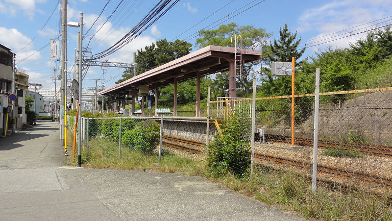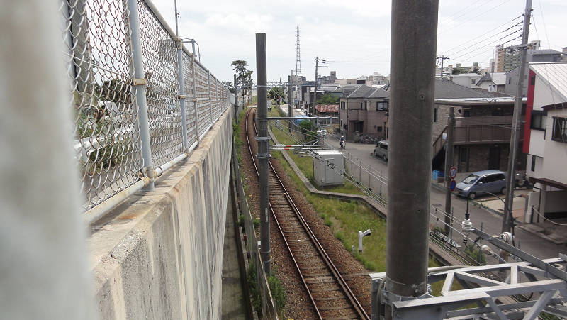 한층 더 북측을 보면, 선로가 계속 되고 있습니다.필요이상으로 긴 것은, 이전, 무코강선이 한층 더 북쪽으로 성장하고 있고, 국도 2호선을 달리고 있던 노면 전차인 한신 국도선과의 연락을 할 수 있도록(듯이)・・・는 아니었던 것 같습니다.