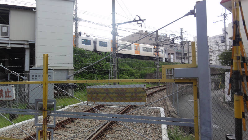 1.7킬로 밖에 없는 짧은 무코강선으로, 종착역 1개 앞의 스사키(Suzaki) 역까지 왔더니, 건널목의 경보기가 울었으므로, 기다리고 있으면, 전철이 홈에 들어 왔습니다.30년전까지는, 여기가 종착역이었다고 하는 것을, 나중에 알았습니다^^.