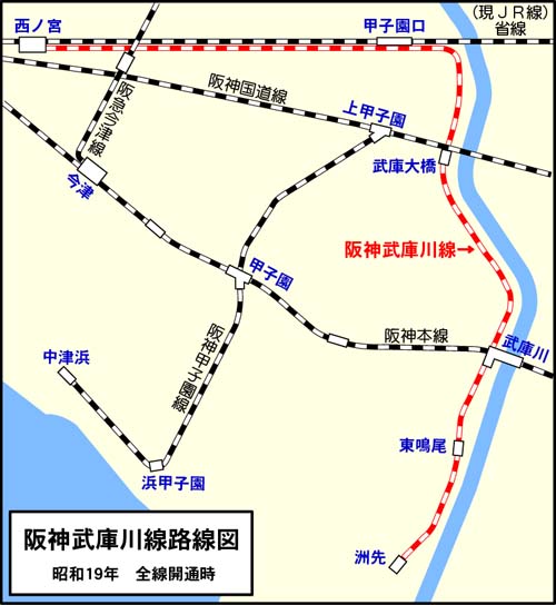 当時の国鉄西宮駅までつながって、国鉄の貨物車両が乗り入れていたそうです。そのために武庫川線は、狭軌のJRの車両が入れるように全線三線軌条だったという・・・現在の武庫川団地には、現在の新明和工業の前身の「川西航空機」の工場があって・・・というくだりは、興味のある人は調べてみるといいでしょう。